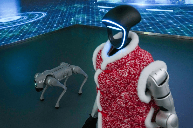 在北京市机器人产业园(亦庄),“机器人大世界”的应用场景示范区展出的宇树公司的机器狗和机器人(2025年2月24日摄)。新华社记者 鞠焕宗 摄
