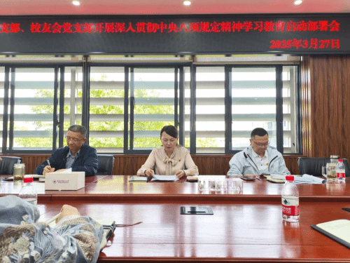 2025年3月27日,党政办党支部全体党员在博德楼A座五楼会议室开展深入贯彻中央八项规定精神学习教育启动部署会,会议由党政办主任、党支部书记金琳同志主持并作动员讲话。