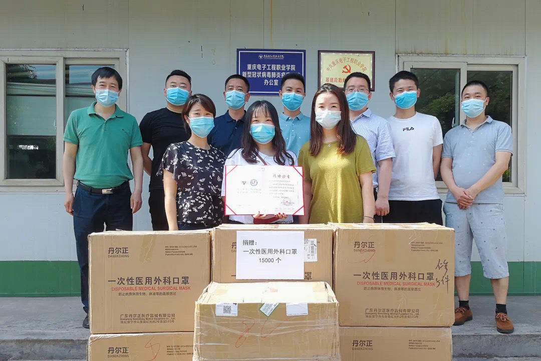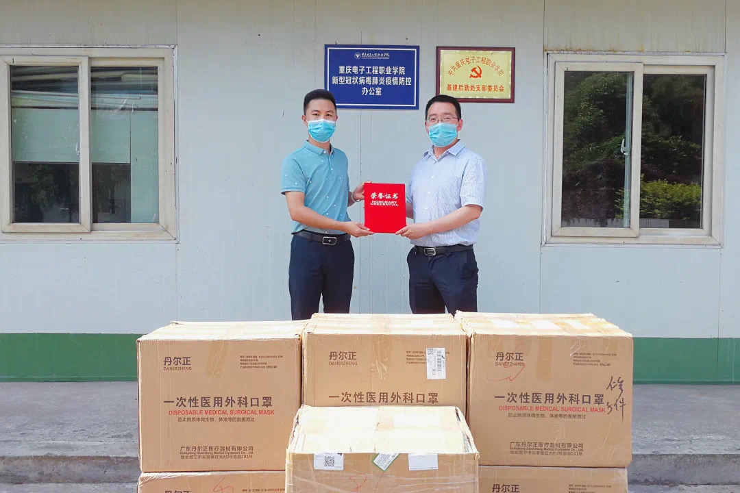 “乘风破浪再启航,天凡助力暖人心” 2020年5月18日,一场简短而充满浓浓温情的捐赠仪式在重庆电子工程职业学院新型冠状病毒肺炎疫情防控办公室外举行。为进一步丰富学校复学防疫物资储备,重庆天凡教育信息咨询有限责任公司带着对学校的牵挂和浓浓爱心,向我校捐赠一次性医用防护口罩15000枚,为我校学生返校复学准备工作加油助力。我校疫情防控领导小组副组长、副校长黄爱明,重电校友总会秘书长周鑫 、副秘书长王永中,学校后勤保障处处长吕义清和校友办相关负责人,天凡公司负责人陈斌及校友代表肖梅芳等共同出席了捐赠仪式。