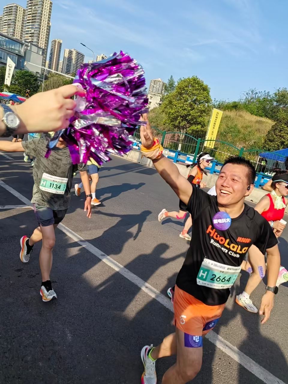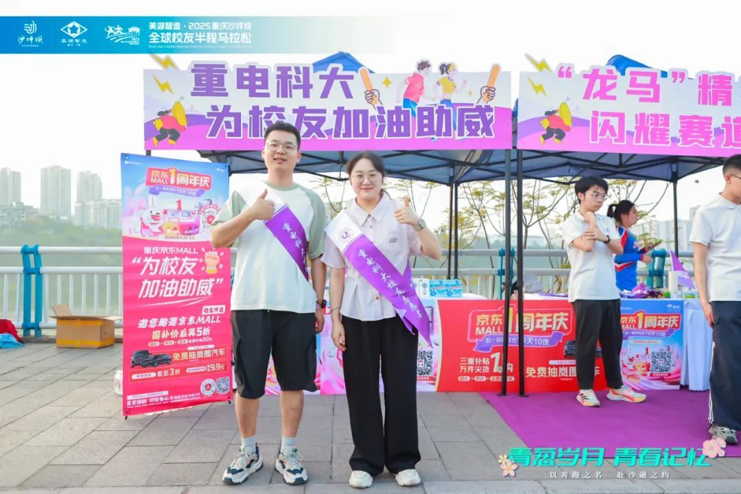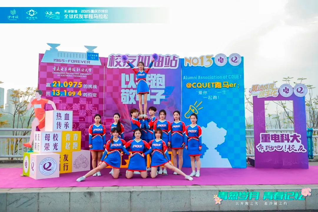 在此次马拉松赛道上,重电青春学子的团结、友好与热忱被演绎得淋漓尽致。赛事现场,我校所属的13号“加油站”被赋予“重电人,一生一起跑”的美好寓意,加油呐喊声响彻赛道,热烈的氛围感染着每一位途经的跑者与路人。来自党政办校友工作中心、党委宣传部融媒体中心、校团委学生会、大学生艺术中心(校BOG街舞队)及校啦啦操队的逾40名学子和毕业校友志愿者胡腊梅、冯洁铭等扎根赛道旁,或以活力群舞、花球啦啦操等形式为选手加油助威,或顶着骄阳,专注记录赛事的每个精彩瞬间,或默默坚守,从赛前场地布置、物资搬运,到赛中校友文创展示、秩序维护、信息传递,再到赛后做好收尾工作,他们不仅以亮眼的演绎为参赛者呈现了一场重电视觉与文化的青春盛宴,更以每个环节的倾情付出,诠释了重电学子的无私奉献与高度责任心。